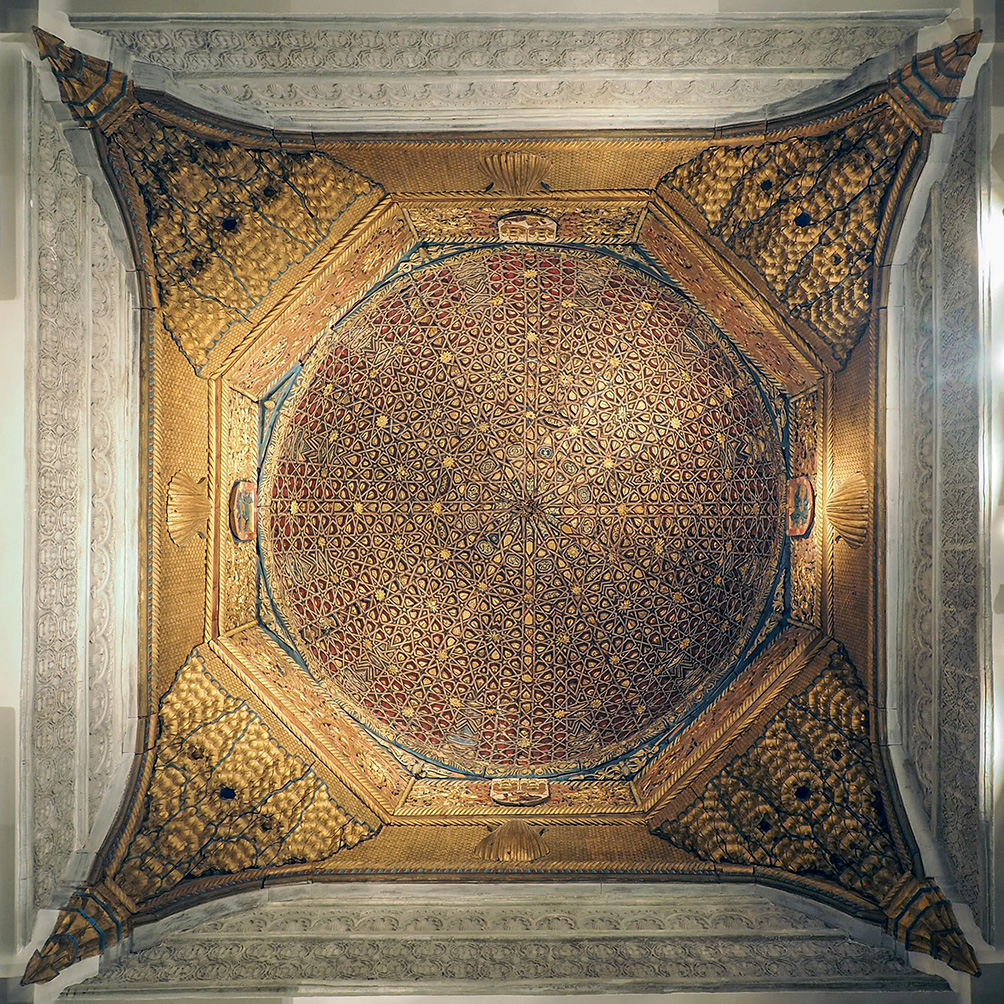Y, cómo no, la riqueza sensorial de los tres últimos versos. Donde Horacio usó el poder elíptico y sugerente de la metonimia («superba […] limina»), Fray Luis nos evoca una cúpula de Samarcanda o la Mezquita de La Roca de Jerusalén. Tampoco me desagrada un artesonado mudéjar hispano. El pintor.