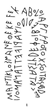 - ¡La inscripción es un hallazgo arqueológico real! Lo expone la profesora Ana Sofía Pérez-Bustamante en La revolución del alfabeto antiguo en la antigüedad, https://slideplayer.es/slide/13917830/ ↩︎